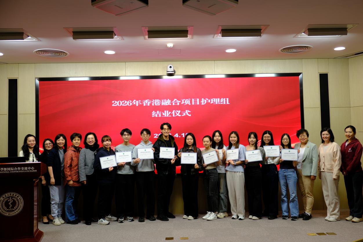 2026 年 4 月 3 日至 12 日,第三届香港内地融合项目首批护理学生交流实习活动在北京大学医学部顺利开展。11 名来自香港大学、香港理工大学、香港医院管理局等 5 所院校及机构的护理专业学子,完成了沉浸式的学习与交流。本届项目在前两届积淀之上迭代升级,以 “临床实践 + 文化浸润” 为特色路径,不断深化内地与香港护理教育的交流互鉴,为两地医学教育协同发展注入新活力。