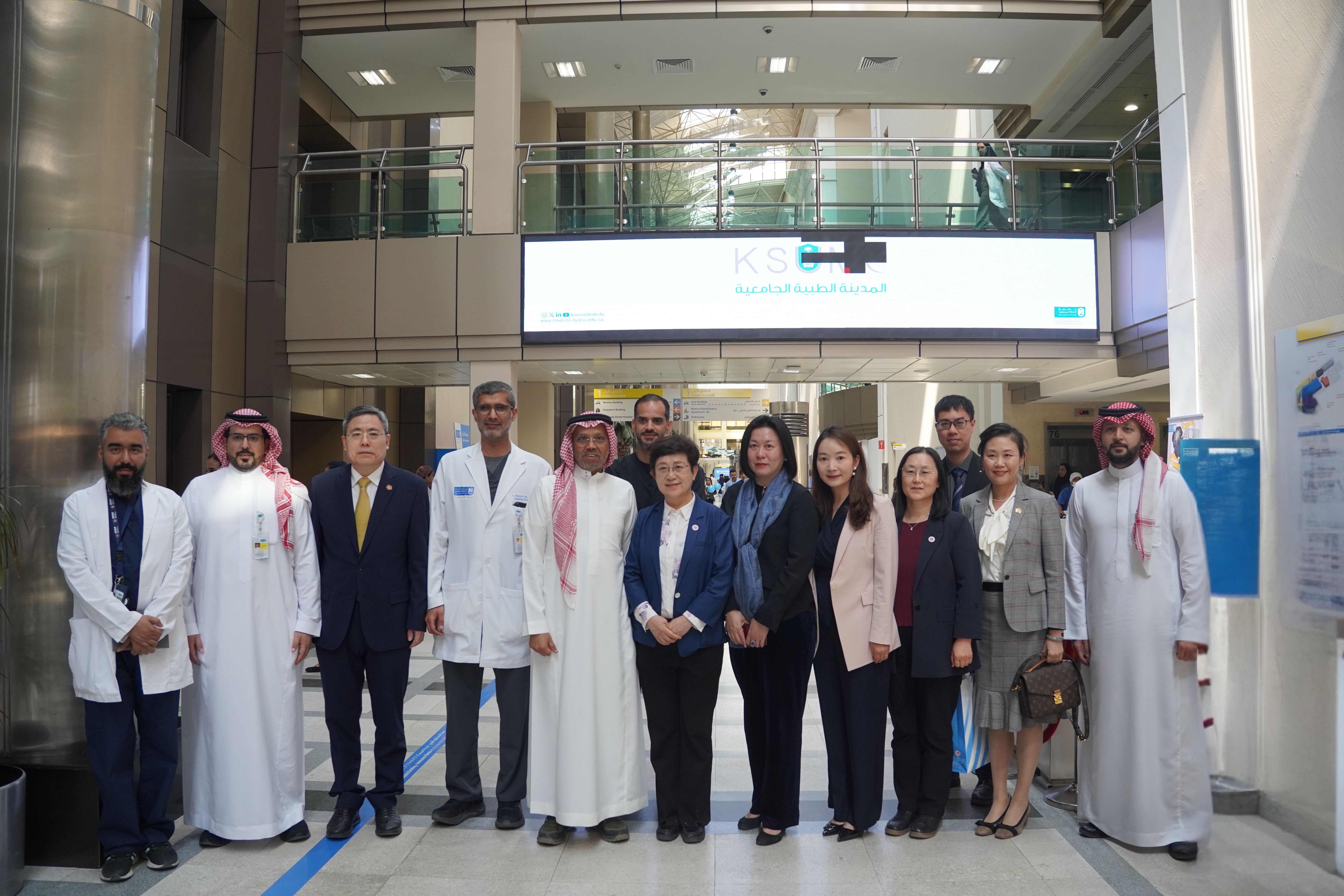 访问期间,代表团深度调研沙特多家顶级医疗与学术机构,系统了解沙特医疗卫生体系及专科医师培训制度的整体框架,并就特色专科建设、医教研协同发展与医院文化建设等方面开展交流。代表团重点考察了沙特在“2030愿景”战略背景下数字医疗基础设施建设与智慧医院管理领域的创新实践。