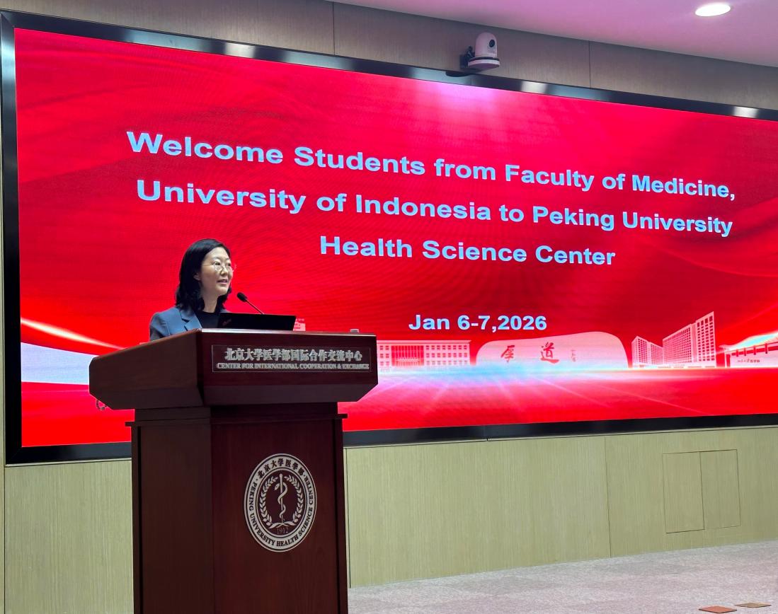 冬日的北大医学部校园暖意融融,为期两天的 “青春医享・中印尼同行” 北京大学医学部-印度尼西亚大学医学院医学交流营于 2026 年 1 月 7 日圆满落幕。来自印尼大学的24名临床医学本科生与北京大学医学部的14名学子齐聚一堂,在学术分享、校园和医院参访与深度研讨中,搭建起跨越国界的医学友谊桥梁。